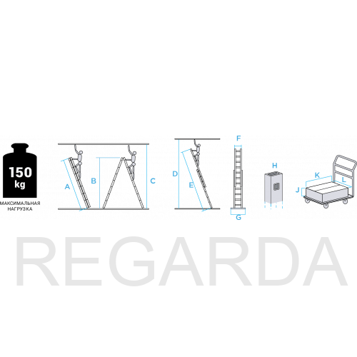 Лестница с перекладинами «3 в 1»: приставная лестница, приставная раздвижная лестница, стремянка. Для краткосрочных работ и частного применения.