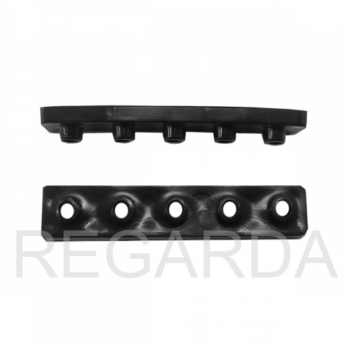 Планка изготовлена из материала – полиэтилен ПЭНД и имеет 5 посадочных отверстий, которые по желанию можно укоротить до требуемого количества отверстий, в зависимости от условий применения.
