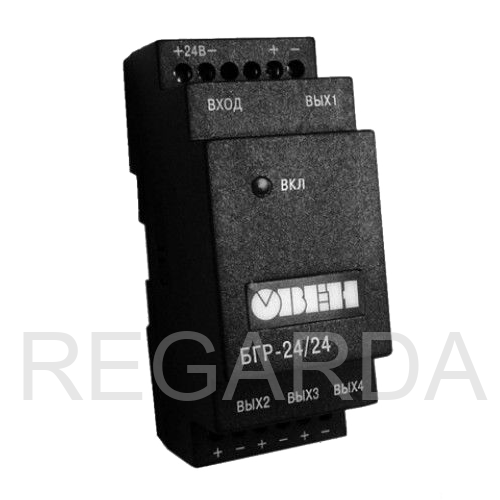 Блок гальванической развязки - БГР2(4)-24/24 - предназначен для питания оборудования нестабилизированным напряжением постоянного тока 24 В. БГР представлен в четырехканальном и двухканальном исполнениях и в зависимости от этого формирует 4 или 2 изолированных друг от друга выходных напряжения 24 В с нагрузочной способностью выходов не более 40 мА.