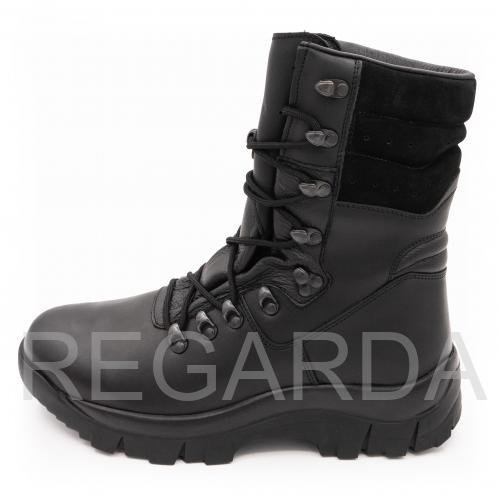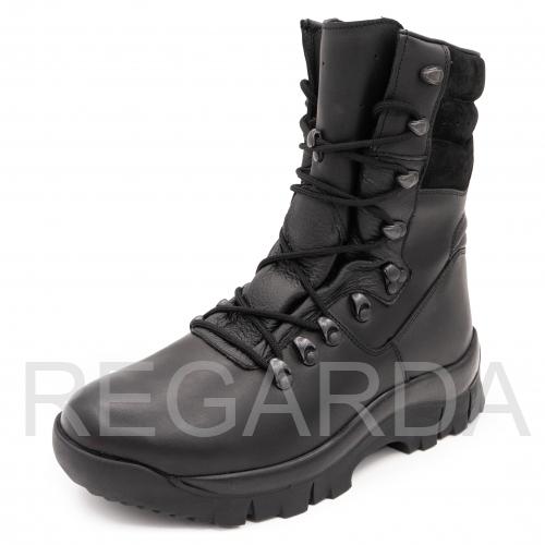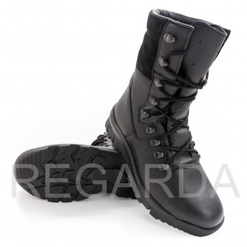 Верх ботинок изготовлен из гидрофобной кожи (full grain – цельная, долговечная, плотная, дышащая). Анатомическая стелька на меху обладает антибактериальными свойствами. Подошва выполнена из ПУ и резины. Резина обеспечивает износостойкость и сцепление, полиуретан амортизирует и служит теплоизолятором. Подошва данной модели отличается антистатическим и «анти-шок» эффектом, а также маслостойкостью.