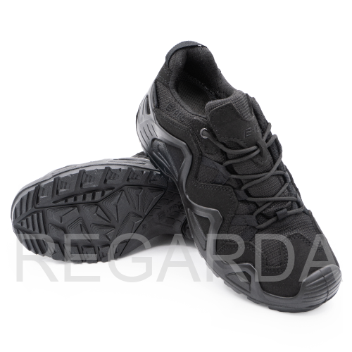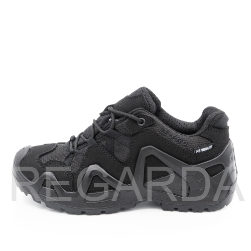 Серия обуви E-PRO — это одна из самых популярных в туристической и тактической обуви, используемая походниками, альпинистами, спортсменами, военными и сотрудниками правоохранительных органов. Линейка E-PRO Special представлена целым семейством моделей, отличающихся по цвету, высотой берца, а также наличием мембраны. Основной материал изготовления — высококачественная замша со вставками из кордуры. Наличие подкладки из мембраны делает обувь непромокаемой и одновременно дышащей, способной отводить испарения с поверхности стопы. Подлитой носок обеспечивает защиту от повреждений. Защитный рант с выборками для облегчения веса проходит по всему периметру и создает узнаваемый образ. Кроме основных функций, рант дает дополнительное сцепление с поверхностью, например, при движении вдоль склона. Высота среднего ботинка 14.5 см, этого хватает для отличной фиксации голеностопа. Все детали прошиты двойным швом, все швы сделаны крайне аккуратно. На пятке есть петелька, облегчающая надевание. Подошва имеет многослойную структуру. Промежуточный слой из полиуретана придает высокие амортизирующие свойства; ходовой слой из резины на основе натурального каучука делает подошву более износостойкой и способствует хорошему сцеплению с грунтом и другими плоскостями.