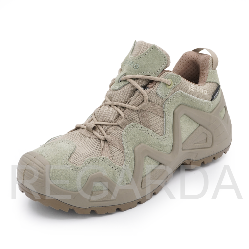 Серия обуви E-PRO — это одна из самых популярных в туристической и тактической обуви, используемая походниками, альпинистами, спортсменами, военными и сотрудниками правоохранительных органов. Линейка E-PRO Special представлена целым семейством моделей, отличающихся по цвету, высотой берца, а также наличием мембраны. Основной материал изготовления — высококачественная замша со вставками из кордуры. Наличие подкладки из мембраны делает обувь непромокаемой и одновременно дышащей, способной отводить испарения с поверхности стопы. Подлитой носок обеспечивает защиту от повреждений. Защитный рант с выборками для облегчения веса проходит по всему периметру и создает узнаваемый образ. Кроме основных функций, рант дает дополнительное сцепление с поверхностью, например, при движении вдоль склона. Высота среднего ботинка 14.5 см, этого хватает для отличной фиксации голеностопа. Все детали прошиты двойным швом, все швы сделаны крайне аккуратно. На пятке есть петелька, облегчающая надевание. Подошва имеет многослойную структуру. Промежуточный слой из полиуретана придает высокие амортизирующие свойства; ходовой слой из резины на основе натурального каучука делает подошву более износостойкой и способствует хорошему сцеплению с грунтом и другими плоскостями.