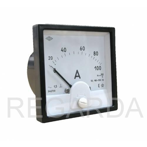 Амперметр Э42700 - прибор электромагнитной системы, предназначен для измерения тока в цепях переменного тока. Амперметры электромагнитной системы более устойчивы к перегрузкам и это позволяет создавать приборы с коэффициентом перегрузки от 2-х до 5-ти кратного диапазона измерения. Диапазоны измерений от 100 мА до 100 А при прямом включении. Для расширения диапазонов измерения применяются трансформаторы тока типа ТОП-0,66 (заказываются отдельно). Амперметры Э42700 изготавливаются с нулевой отметкой на краю диапазона и могут быть изготовлены со шкалами в любых единицах измерения по желанию заказчика.