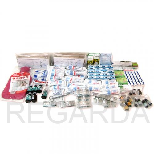 В состав аптечки входят лекарства, перевязочные средства, а также медицинские инструменты и вспомогательные материалы.
