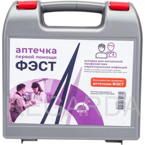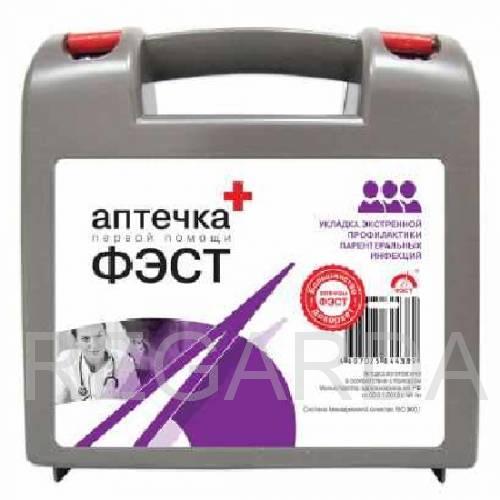 Это портативный комплект медикаментов для экстренной первой помощи. Помещен в удобный пластиковый чемоданчик-футляр, у которого есть ручки. Он удобен в хранении и транспортировке. Его можно хранить в тумбочке, ящике стола, бардачке или багажнике автомобиля, переносить в руке, походной сумке или рюкзаке. Герметично закрывается, не промокает под дождем.