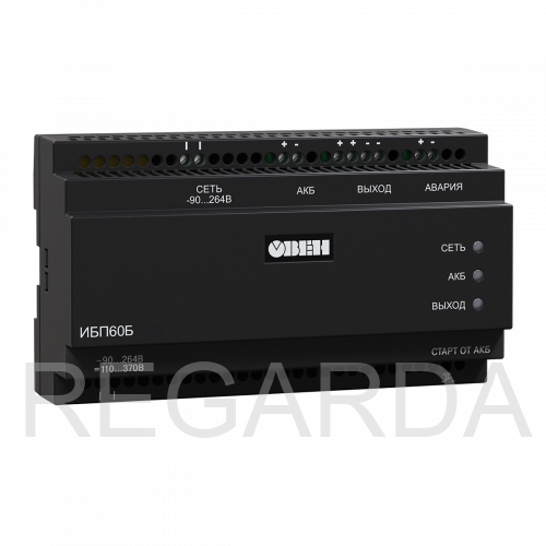 ИБП60Б представляет собой источник вторичного электропитания с резервированием и обеспечивает подключенные к его выходу устройства бесперебойным электропитанием от сети (при ее наличии) и от внешней батареи (при отсутствии сети).