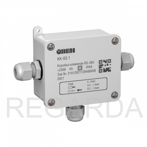 КК-03 предназначена для разветвления кабелей интерфейса RS-485, а также сетей 230 В с номинальными токами не более 4 А на предприятиях различных отраслей промышленности и сельского хозяйства.