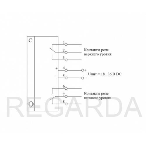 Тип выходного сигнала: Два реле для программирования уровней (Питание 24 В DC. Два выходных реле (верхнего и нижнего уровня) и аналоговый выход 10-30 В)