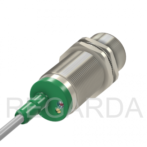 Емкостный датчик бесконтактный ВБЕ-М30-73С-1111-СА в цилиндрическом корпусе из никелированной латуни Ø30 мм, в общепромышленном исполнении.