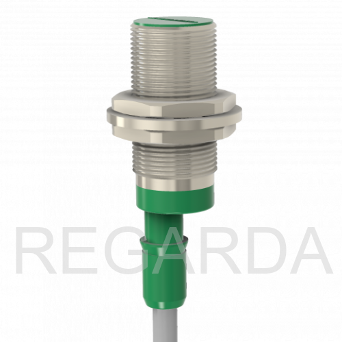 Индуктивный датчик ВБИ-М18-34С-1111-С в цилиндрическом корпусе из никелированной латуни Ø18 мм, в общепромышленном исполнении.