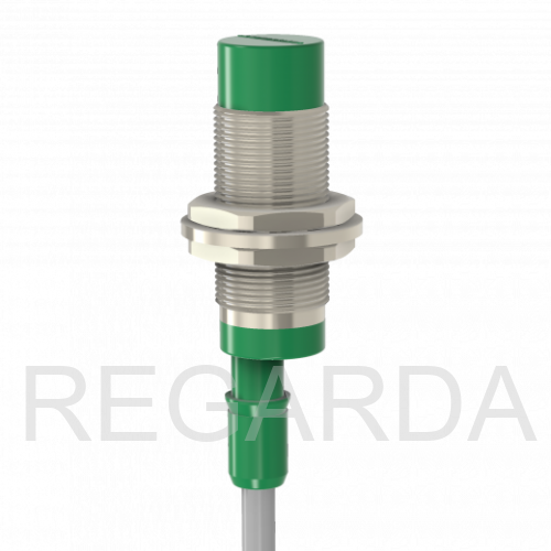 Индуктивный датчик ВБИ-М18-44С-2121-С в цилиндрическом корпусе из никелированной латуни Ø18 мм, в общепромышленном исполнении.