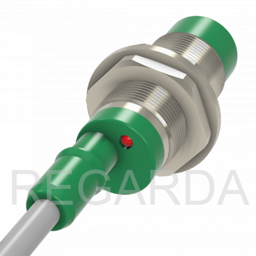 Индуктивный датчик ВБИ-М18-44С-2122-С в цилиндрическом корпусе из никелированной латуни Ø18 мм, в общепромышленном исполнении.