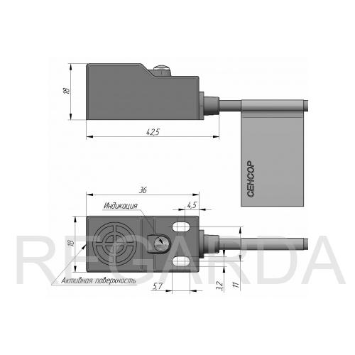 Индуктивный датчик ВБИ-П18Т-36У-1121-С в прямоугольном корпусе из полиамида, в общепромышленном исполнении.