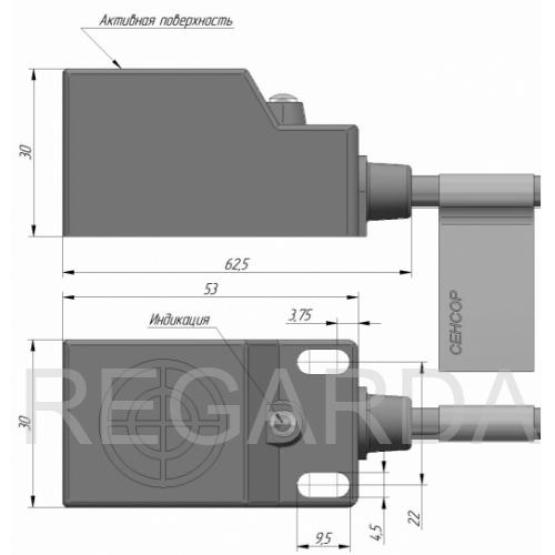 Индуктивный датчик ВБИ-П30В-53У-1113-С в прямоугольном корпусе из полиамида, в общепромышленном исполнении.