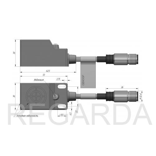 Индуктивный датчик ВБИ-П30Т-53УР-1113-С в прямоугольном корпусе из полиамида, в общепромышленном исполнении.