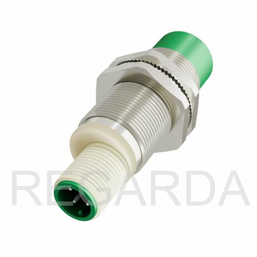 Индуктивный датчик ВБИ-М18-44Р-2111-С в цилиндрическом корпусе из никелированной латуни Ø18 мм, в общепромышленном исполнении.