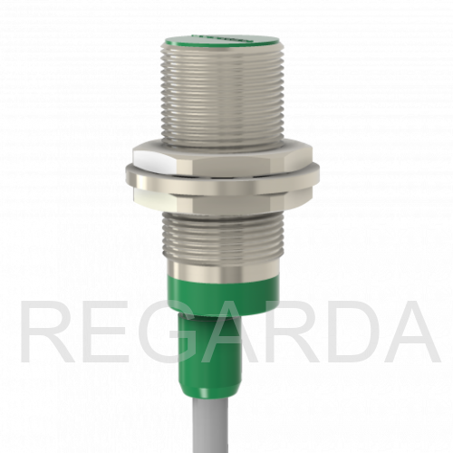 Индуктивный датчик ВБИ-М18-34В-1111-С в цилиндрическом корпусе из никелированной латуни Ø18 мм, в общепромышленном исполнении.