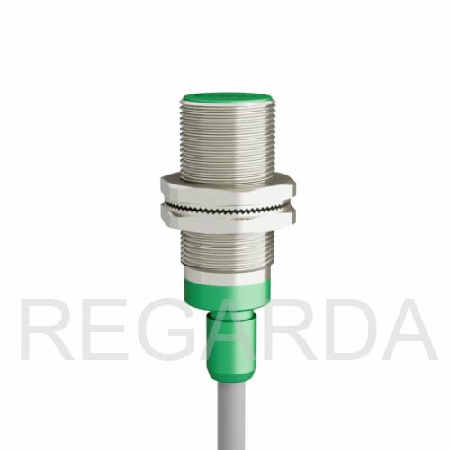 Индуктивный датчик ВБИ-М18-34В-1113-С в цилиндрическом корпусе из никелированной латуни Ø18 мм, в общепромышленном исполнении.