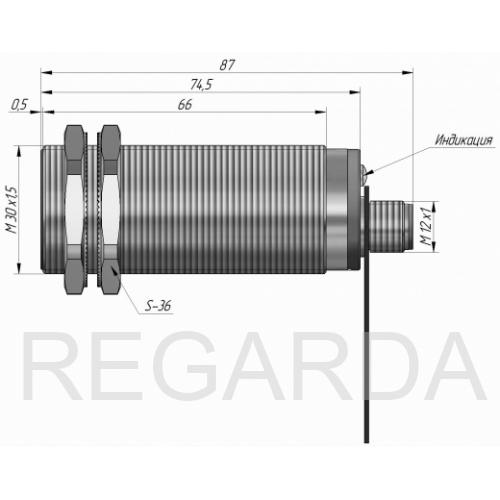 Индуктивный датчик ВБИ-М30-76Р-1113-С в цилиндрическом корпусе из никелированной латуни Ø30 мм, в общепромышленном исполнении.