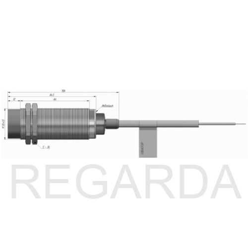 Индуктивный датчик ВБИ-М30-91В-2113-С.6 в цилиндрическом корпусе из никелированной латуни Ø30 мм, в общепромышленном высокотемпературном исполнении.