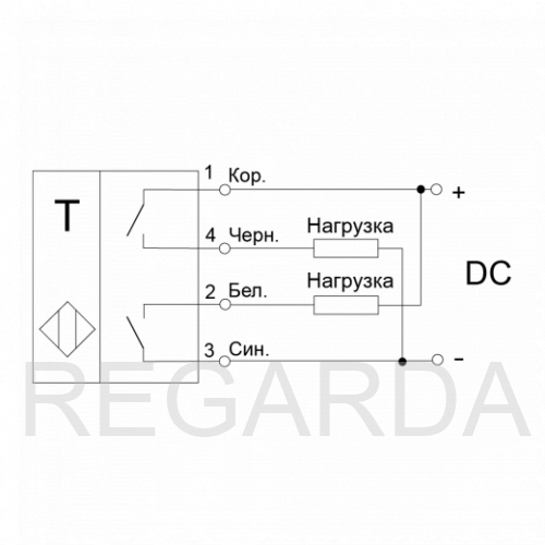 Барьерные датчики (тип-T на прерывание оптического луча) источник света и приемник находятся в отдельных корпусах и устанавливаются друг напротив друга.