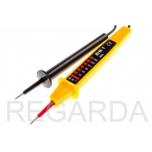 Тестер напряжения 6890-63 (8 в 1) для ступенчатой индикации напряжения электропитания и химических источников питания типа AA, AAA, C, D. Он отличается неоновой дискретной индикацией напряжения 150-500 В, качественной сборкой и надежностью. Стержень цифровой отвертки-индикатора очень прочен, что гарантирует долговечность инструмента.