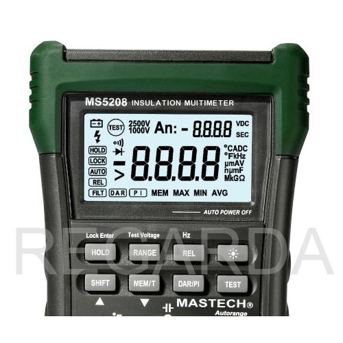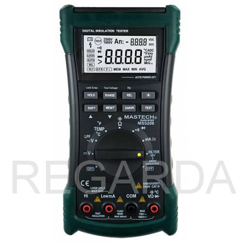 Мультиметр с основной функцией измерения сопротивления изоляции, с TRUE-RMS, наличием фильтра низких частот (LPF), памятью на 100 ячеек, измерением максимальных, минимальных и средних значений.