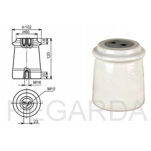 Изолятор изготовлен из электротехнической керамики, что позволило получить высокие диэлектрические свойства. Термическая обработка изолятора проводится два раза: первый раз - только фарфор, второй раз после нанесения эмали, которая служит для защиты керамики от внешних воздействий, попадания влаги и грязи.