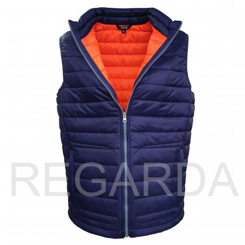 Жилет утепленный арт. J-01. выполнен в классическом фасоне из высококачественных материалов. Утепленный стеганый жилет прямого кроя подходит как мужчинам, так и женщинам. Центральная застежка - тесьма «молния». На модели расположены карманы в листочку, закрывающиеся на тесьму на тесьму «молния». В жилете арт. J-01 воротник-стойка, окантовка проймы сделана из вязаной эластичной резинки. Подкладка выполнена контрастным оранжевым цветом.
