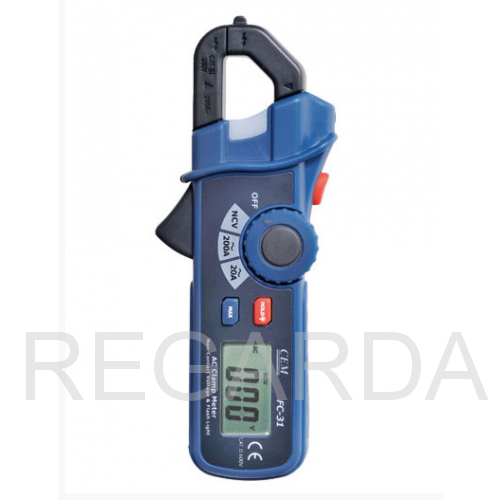FC-31 Мини токовые клещи 3 в 1, предназначены для измерения переменного тока до 200А. Токовые клещи FC-31 очень надёжны, удобно лежат в руке и имеют большой дисплей с подсветкой. Реализована функция бесконтактного определения переменного напряжения, о наличии которого сообщит световой индикатор. Для удобства работы в слабо освещенных местах встроен фонарик.