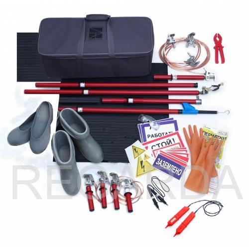 Данный набор приборов и СИЗ используют для обеспечения безопасности персонала при ремонте и обслуживании электроустановок с напряжением от 1 до 15кВ.