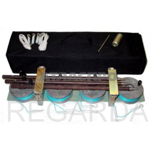 Комплект принадлежностей П4126М2 предназначен для использования совместно с прибором Ф4103-М1 при измерениях величины сопротивления изоляции. Может также применяться с другими марками аналогичных измерителей. В поставку входят 3 металлических штыря и 4 катушки медного провода. Для переноски изделия предусмотрена специальная сумка.