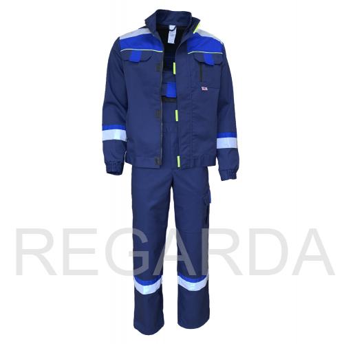 Костюм "БРУКЛИН" изготовлен в соответствии с ГОСТ и включает 2 предмета: куртка, полукомбинезон. Центральная застежка куртки- молния, закрытая ветрозащитной планкой на липучках. На изделии расположены нагрудные накладные карманы на молнию и фигурными клапанами на липучку, карман в рамку с фигурным клапаном на липучку и нижние карманы в листочку. Рукава с манжетами с частичной стяжкой на эластичную резинку. Усилительные накладки в области локтей обеспечивают дополнительную защиту. Куртка на поясе с регулировкой по ширине хлястиками и липучкой. Полукомбинезон оснащен различными многофункциональными карманами для хранения мелочей. Гульфик застегивается на молнию и в правом боковом шве на пуговицы. Эластичной резинкой по спинке обеспечивает комфортную посадку. На комбинезоне бретели на пластиковых застежках (фастексах), регулируются по длине за счет эластичной резинки. Для безопасной работы сотрудника в местах с плохим освещением на костюме «БРУКЛИН» предусмотрена световозвращающая лента шириной 50 мм и декоративные элементы контрастного цвета.