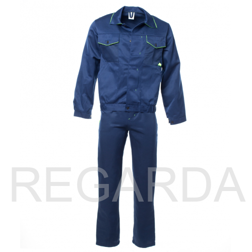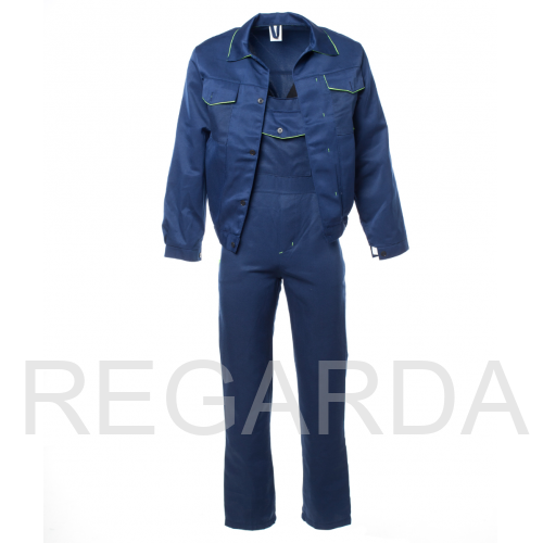 Костюм "ДОКЕР-2" изготовлен в соответствии с ГОСТ и включает 2 предмета: куртка, полукомбинезон. Модель куртки- укороченная со вставками с эластичной резинкой. Потайная застежка на пуговицы. На изделии расположены накладные карманы. Полукомбинезон закрывается пуговицами и оснащен накладными карманами. Отделка клапанов карманов, воротника и другие декоративные элементы яркого контрастного цвета.