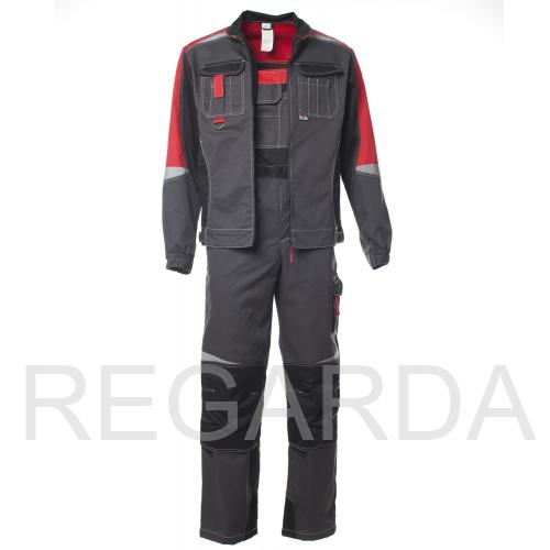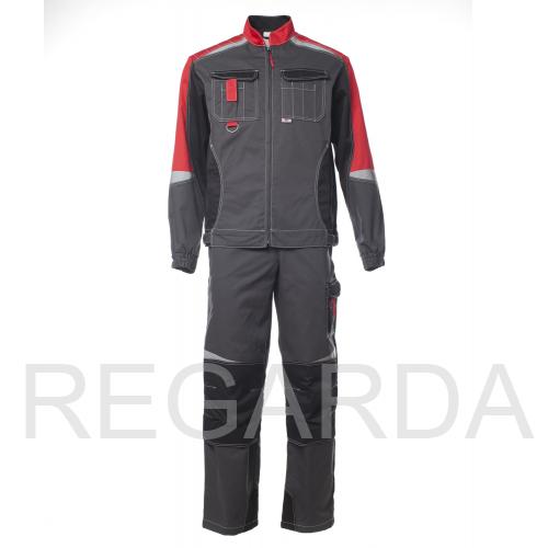 Костюм «ФОРМУЛА» изготовлен в соответствии с ГОСТ и включает 2 предмета: куртка/полукомбинезон. На изделии расположены накладные карманы с фигурными клапанами на ленте-контакт, снабженные держателем полукольца. Нижний край куртки обработан обтачкой и регулируется хлястиками, при этом имеется полукольцо на ленте-контакт. Полукомбинезон оборудован многофункциональными карманами для удобного хранения мелочей. Застежка закрывается на молнию, а в правом боковом шве находятся пуговицы. Для амортизации предусмотрены усилительные накладки в области коленей, закрепленные на липучках. В области талии спинки расположена эластичная резинка для посадки. Бретели регулируются по длине с помощью эластичной резинки и пластиковых застежек (фастексов). Для безопасной работы сотрудника в местах с плохим освещением на костюме «ФОРМУЛА» предусмотрены фигурные элементы, выполненные из светоотражающей ленты.