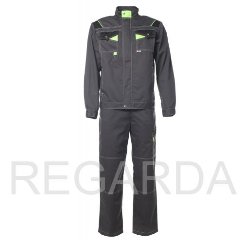 Костюм " КОРВЕТ" изготовлен в соответствии с ГОСТ и включает 2 предмета: куртка, полукомбинезон. На изделии расположены нагрудные накладные карманы с фигурными клапанами на кнопках,нижние карманы в рельефных швах полочек. Усилительные накладки в области локтей обеспечивают дополнительную защиту. Куртка на поясе с фигурной линией низа по спинке. Полукомбинезон оснащен различными многофункциональными карманами для хранения мелочей. Гульфик застегивается на молнию, в правом боковом шве на пуговицы. Эластичная резинка по спинке талии фиксирует посадку. Бретели на пластиковых застежках (фастексах), регулирующиеся по длине за счет эластичной резинки.
