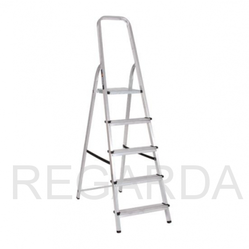 Корпус изготовлен из алюминия, что облегчает транспортировку. Односекционная модель с 4-мя широкими ступенями с рифленой поверхностью и рабочей площадкой. Чтобы стремянка не скользила, на опорах оборудованы заглушки. Также есть дуга безопасности. В сложенном состоянии модель очень компактна и занимает мало места.