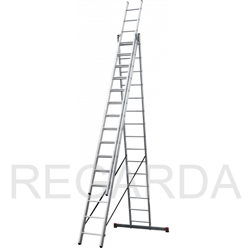 - Алюминиевая стяжка создаёт жёсткий треугольник и фиксирует рабочее положение (для лестниц 3×15–3×17).