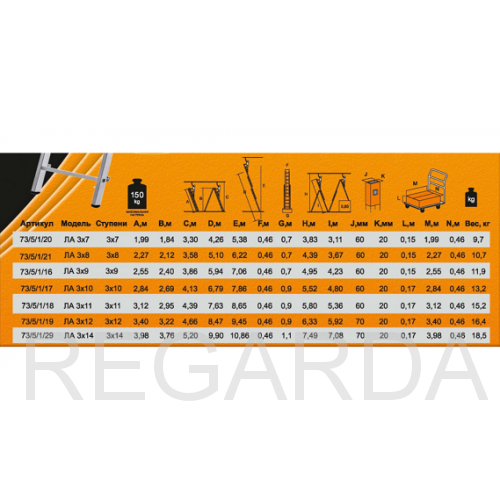 Корпус с антикоррозийным покрытием, изготовлен из алюминия. Благодаря пластиковым наконечникам ножек лестница не скользит по поверхности. Модель компактная, удобно хранить благодаря механизму трансформации. Поперечная траверса надежно фиксирует лестницу на поверхности.