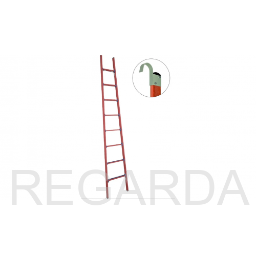 Диэлектрическая приставная лестница Диэлектрик 8 ступеней ЛСПД-3,0 К с крюками - незаменимый помощник при выполнении электромонтажных работ на высоте.