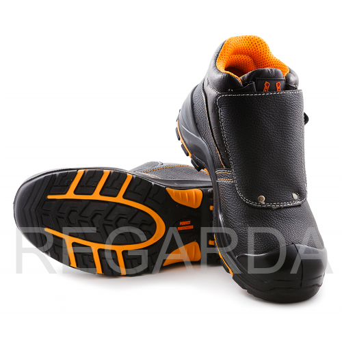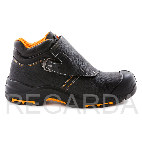 Ботинки "Сварщика" отлично подойдут для использования при сварочных работах. Обувь изготовлена методом прямого литья. Защитный кожаный клапан защищает шнуровку и фиксируется ремешком с пряжкой. Носок из поликарбоната обеспечивает защиту от ударов в носочной части 200 Дж и проколов. Верх обуви выполнен из термостойкой водоотталкивающей кожи толщиной 1,8 - 2 мм, со специальным покрытием, которое защищает от контактов с агрессивной средой: нефти, растворов кислот и щелочной концентрации до 20%, общих производственных загрязнений. Подошва двухслойная (полиуретан и нитрильная резина), устойчива к контакту с нагретой поверхностью до 300 градусов Цельсия, с улучшенным сопротивлением к скольжению и деформациям. Металлическая антипрокольная стелька обезопасит стопу ноги от порезов и проколов.