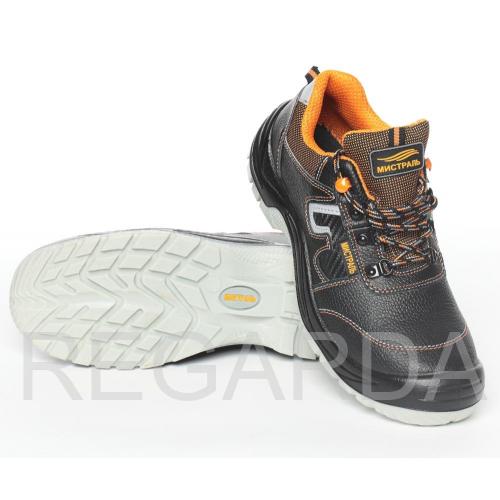 Полуботинки «МИСТРАЛЬ-ULTRA» изготовлены методом литья к заготовке верха обуви. Промежуточный слой подошвы выполнен из полиуретана, ходовой слой из термополиуретана с улучшенным сопротивлением скольжению, стойкостью к деформациям, истиранию. Подошва – двухслойная ПУ-ТПУ устойчива к воздействию нефти, нефтепродуктов, кислот и щелочей концентрации до 20%, повышенных и пониженных температур. Для защиты от ударов в носочной части стопы применяется композитный подносок (Мун 200), имеющий конфигурацию, препятствующую надавливанию верхнего края на стопу и оборудованный прокладкой из полиуретана. Обувь изготавливается с проколозащитными прокладками (стельками) из металла, обеспечивающими защиту от проколов и порезов с сопротивлением сквозному проколу пакета деталей низа обуви не менее 1200 Н.