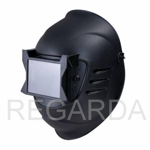 Размер видимой области 110x90мм; откидной блок светофильтра, который фиксируется в двух положениях "вверх-вниз", светофильтр из минерального стекла со степенью затемнения 9,10,11,12,13,14 защищен снаружи поликарбонатным стеклом с внутренней стороны поликарбонатной подложкой; наголовное крепление RAPID с плавной регулировкой; мягкий обтюратор. Замена покровного стекла, светофильтра и подложки не требует инструмента.