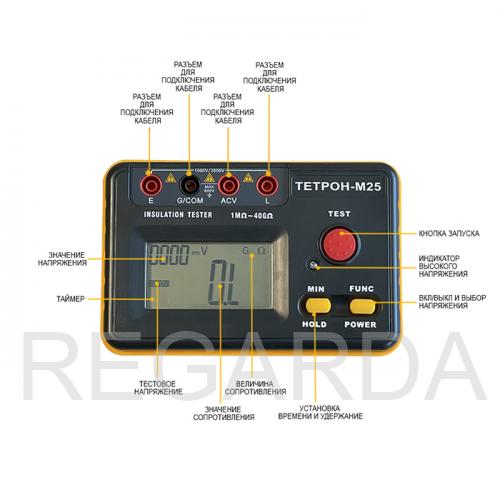 | Измерение сопротивления | 1 МОм – 4 ГОм (1000В), 5 МОм – 40 ГОм (2500В) ГОм |