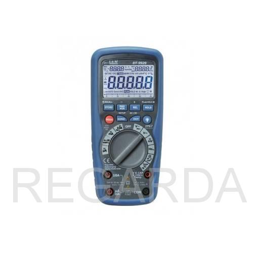 DT-9939 (9929) – профессиональные цифровые мультиметры в двойном пластиковом водонепроницаемом корпусе со степенью защиты IP67. Мультиметры измеряют среднеквадратичное значение переменного напряжения и тока – True RMS и имеют 9999 ячеек памяти для хранения результатов измерений.