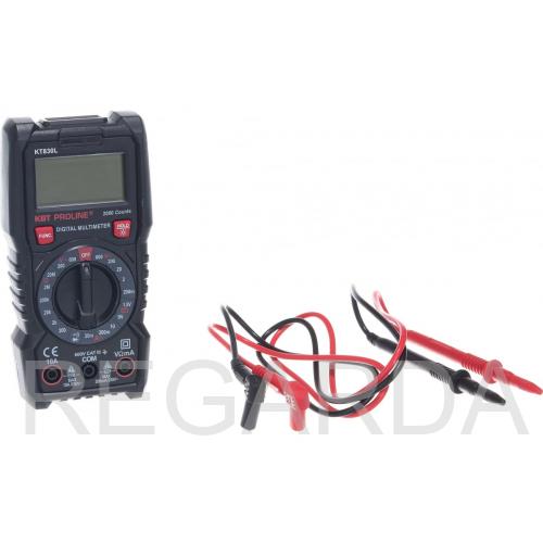 Цифровой мультиметр КВТ KT 830L PROLINE 79127 используется для измерения постоянного тока, постоянного и переменного напряжения, сопротивления. Для расширения функциональности устройство выполняет тест диодов и прозвонку.