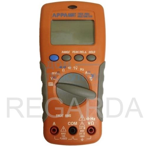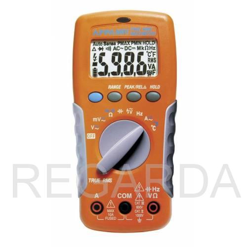 Мультиметр цифровой APPA 62RT (APPA Technology Corporation): Постоянное напряжение 200 мВ - 1000 В; Переменное напряжение 2 мВ - 750 В; Постоянный ток 1 мА - 10 А; Переменный ток 1 мкА - 10 А; Сопротивление 0,1 Ом - 20 МОм; Прозвон цепи; Испытание p-n; Ёмкость 2 нФ - 2 мФ; Частота 2 кГц - 40 МГц; Удержание показаний; Регистрация min/max; Автоотключение с блокировкой; Дисплей 3 (2000); Противоударное исполнение; Бесконтактное определение наличия высокого напряжения.