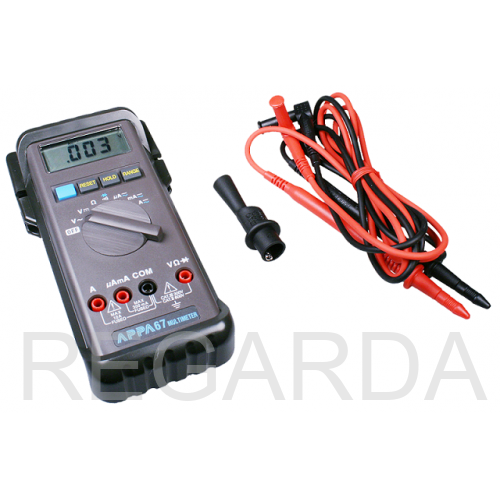 APPA 67 имеет компактный корпус, выполненный из ударопрочных и влагостойких материалов, который повышает удобство работы. Компания-производитель поставляет аппарат вместе 2-мя измерительными щупами, батареями, футляром, зажимами типа "крокодил".