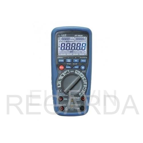 DT-9939 (9929) – профессиональные цифровые мультиметры в двойном пластиковом водонепроницаемом корпусе со степенью защиты IP67. Мультиметры измеряют среднеквадратичное значение переменного напряжения и тока – True RMS и имеют 9999 ячеек памяти для хранения результатов измерений.