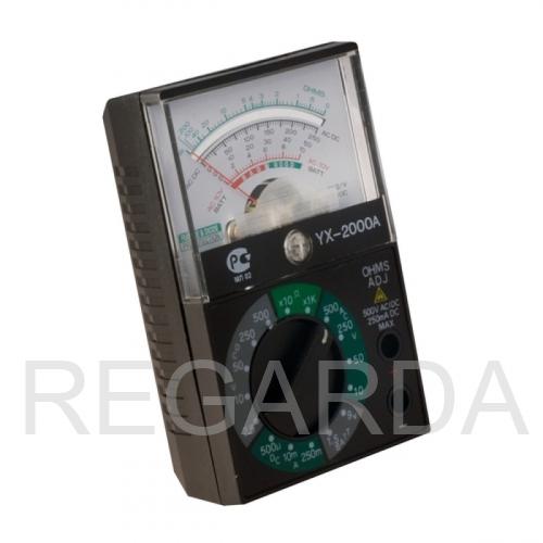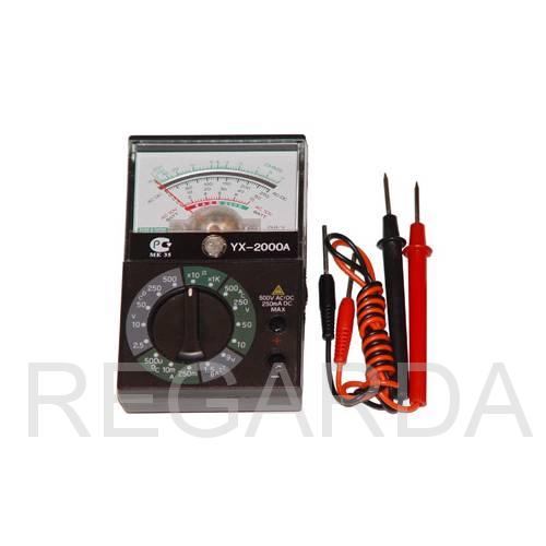 Мультиметр YX2000A – комбинированный измерительный прибор, предназначенный для измерения сопротивления, переменного напряжения до 500 Вольт, теста батарей 1.5 Вольта и 9 Вольт, постоянного тока до 250 миллиАмпер, постоянного напряжения до 500 Вольт